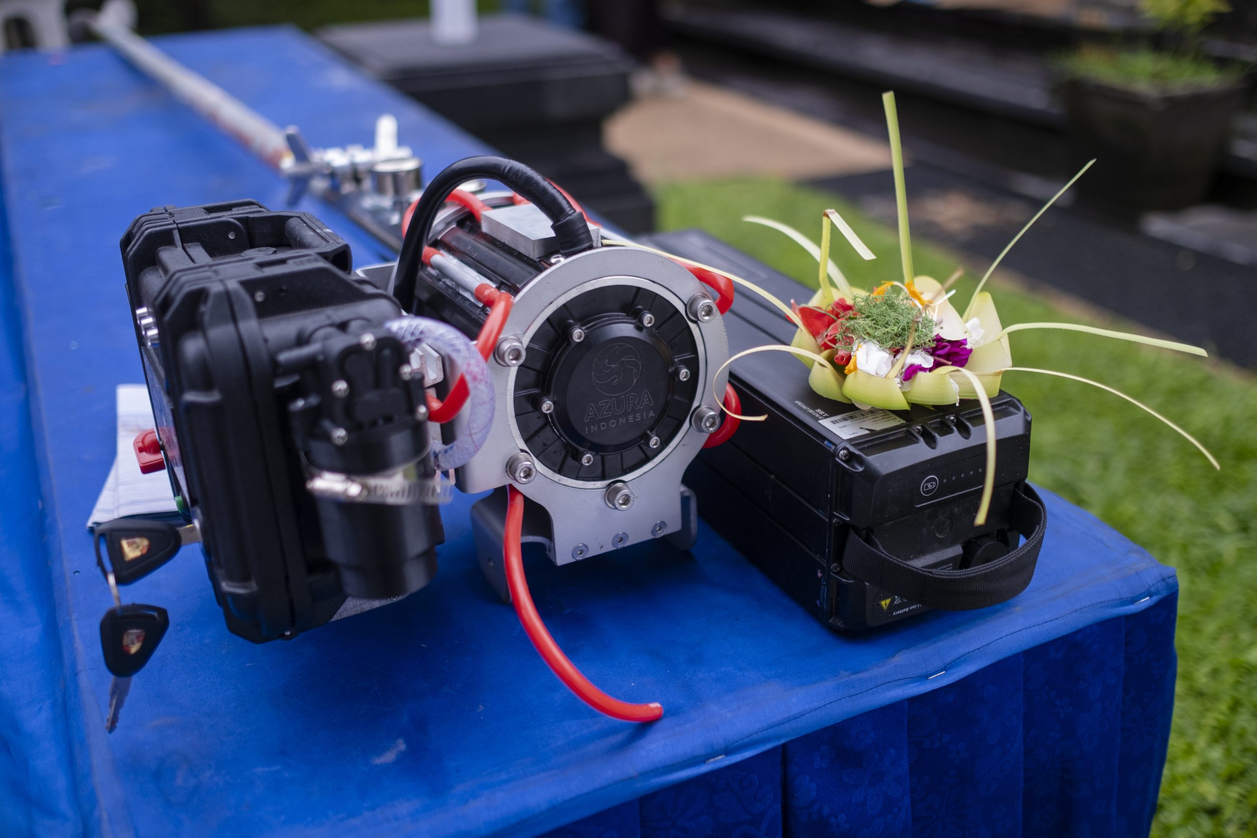 On Thursday, 22 January, residents, fishermen, local government representatives, and program partners gathered in Kusamba for the Closing Ceremony of Nelayan Lestari’s first year. Before any speeches began, guests were invited to walk down to the lower area of the venue, where something unusual for a fishing village sat on display: a MantaOne electric marine engine.